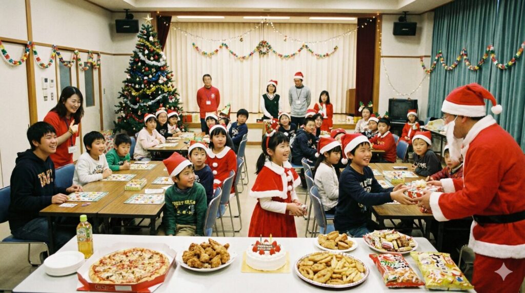 | 12月 | クリスマス会 終業式の日に、みんなで集まりご飯を食べてビンゴ・クイズをやりました。小学生主体で、ビンゴ・クイズを盛り上げてくれて、みんなの主体性が育ちます! |